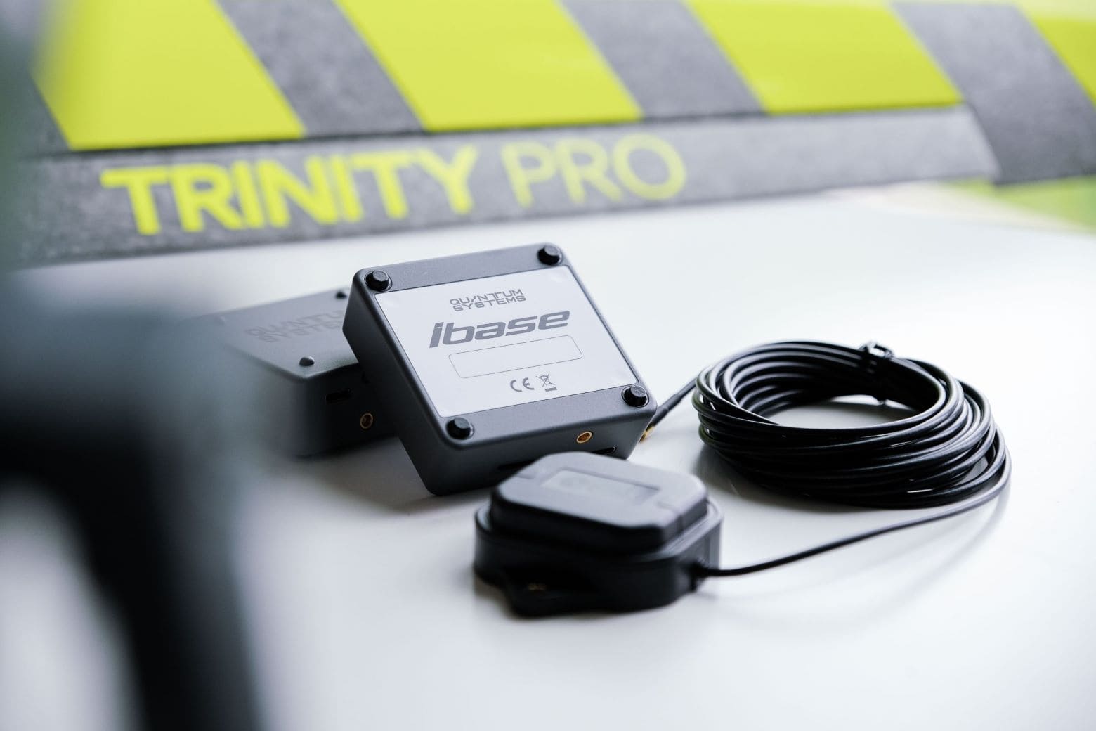 All Trinity Pro UAVs are equipped with an entry-level GNSS reference station, the Quantum Systems iBase. It automatically logs GNSS reference measurements on the ground to a file on a microSD card. The file enables the post processing software to do PPK processing of the data collected in-flight and drastically reduce the GNSS positioning errors.