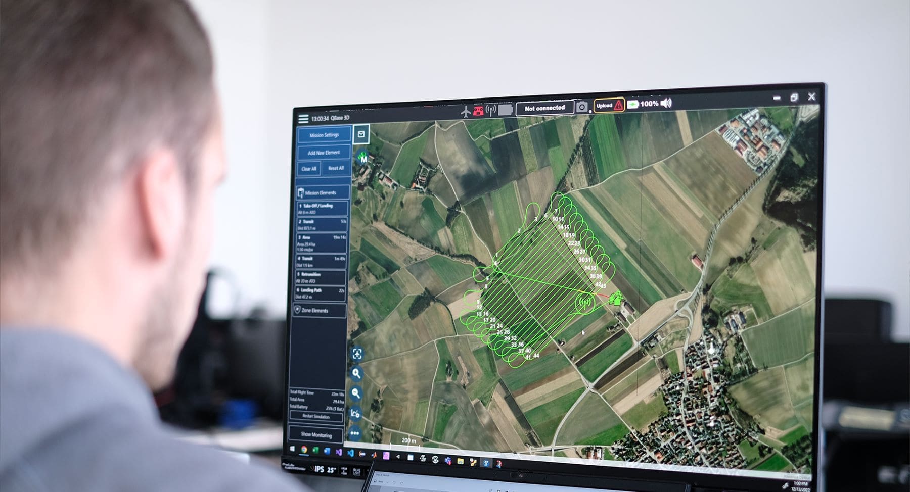 Trinity Pro is combined with our proprietary mission control software QBase 3D. They form a completely integrated system. During field operation, Trinity Pro gives the operator peace of mind. The new autopilot has the latest safety features, ensuring the UAV is flying in the safest possible way. This includes automatic self-diagnostics, terrain awareness, wind simulation and AI powered “return to home”. Potential detected risks are reported during mission planning and before take-off. Future industry specific software connections will also fully integrate with the system and make post-processing work easier. Users can create application-specific reports and analyses without having to spend time establishing new and complicated processes.